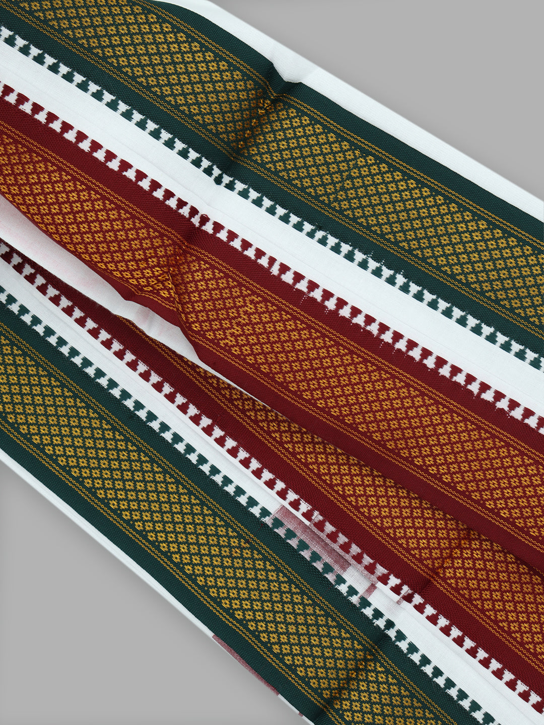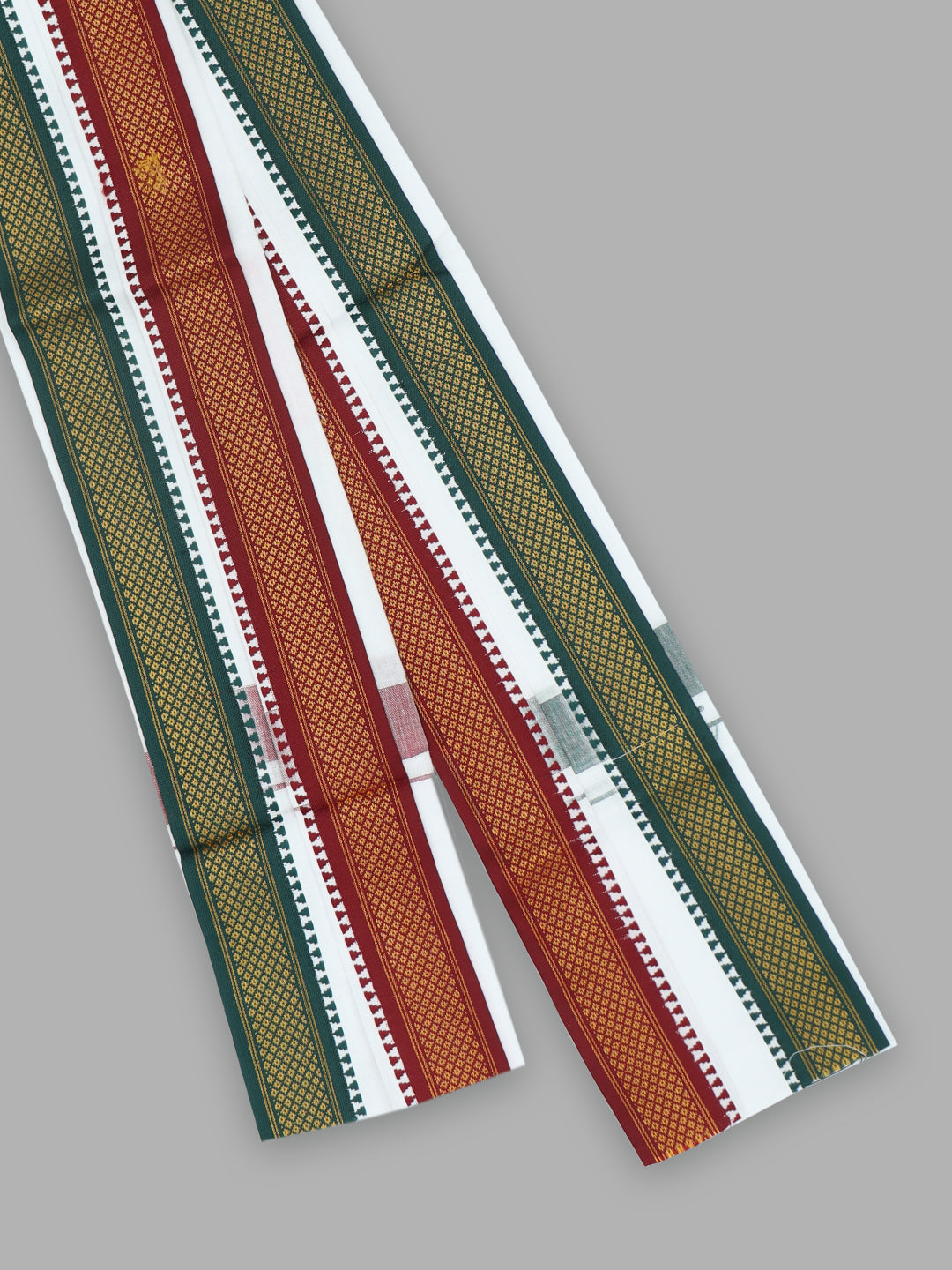 Devotional White Mayilkhan Border Angavashtram Arjun