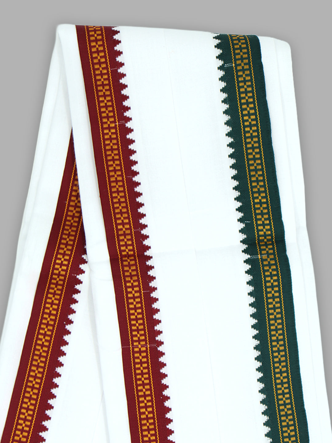 Devotional White Mayilkhan Border Angavashtram Arjun