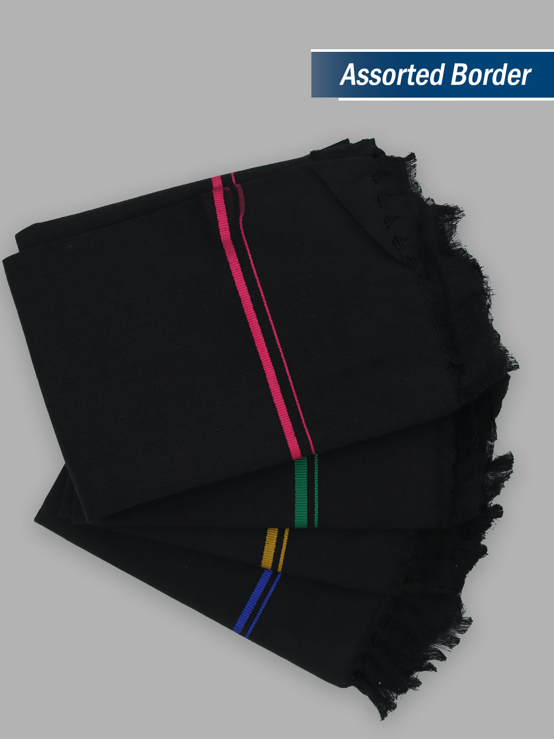 Men Cotton Blend Devotional Black Towel with Assorted Border Classic(Pack of 2)