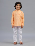 Boys Full Sleeves Orange Kurta with White Pyjama Pant Combo HSB9