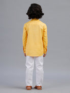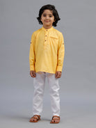 Boys Full Sleeves Dark Yellow Kurta with White Pyjama Pant Combo HSB8