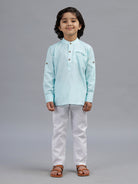 Boys Full Sleeves Sky Blue Kurta with White Pyjama Pant Combo HSB1