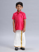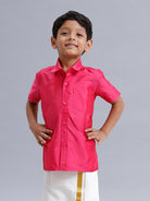 Boys Silk Cotton Dark Pink Half Sleeves Shirt K13