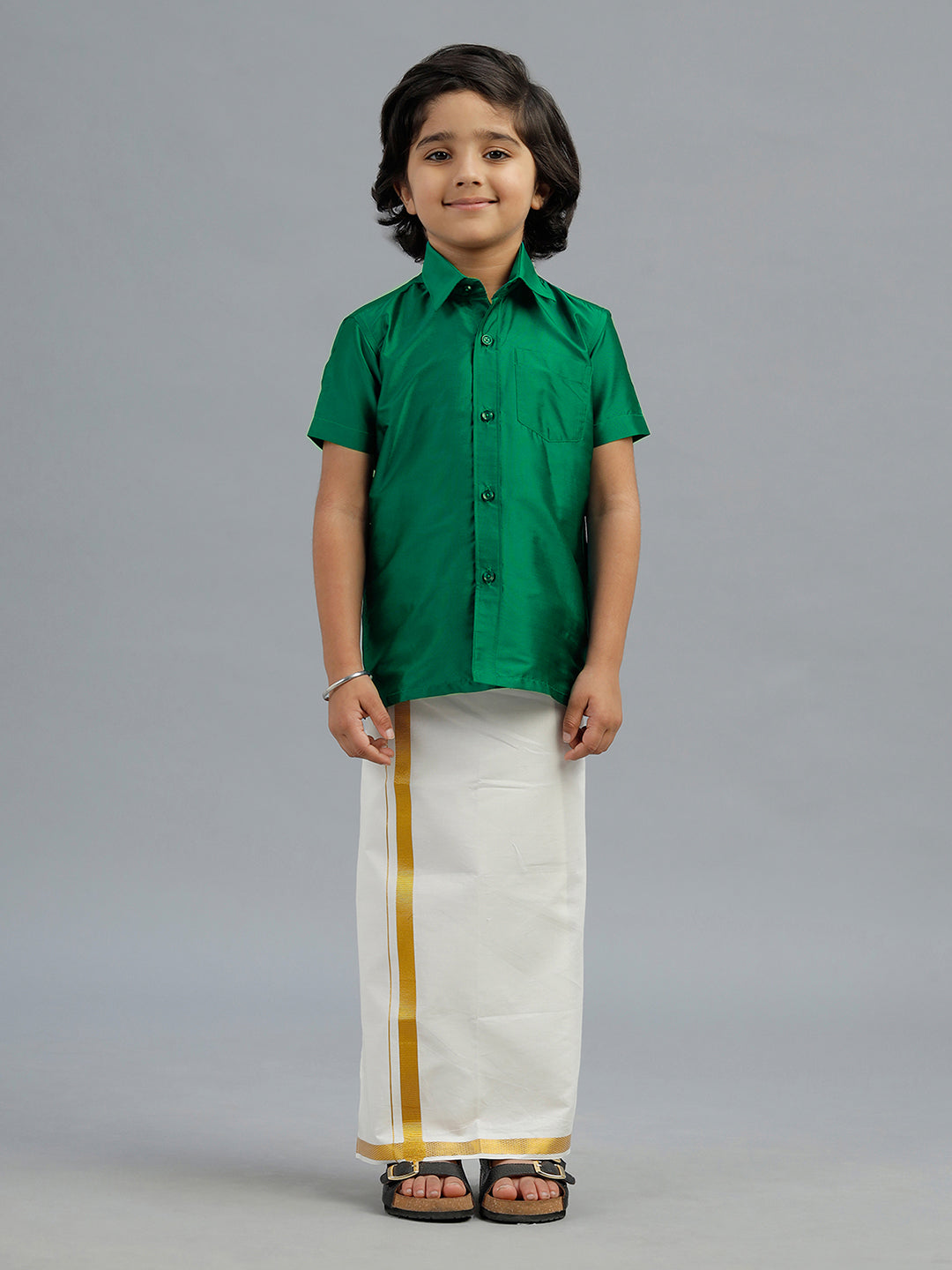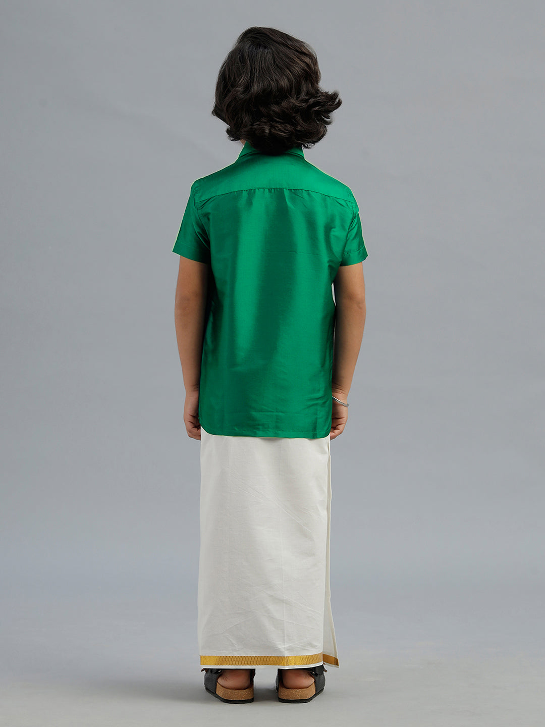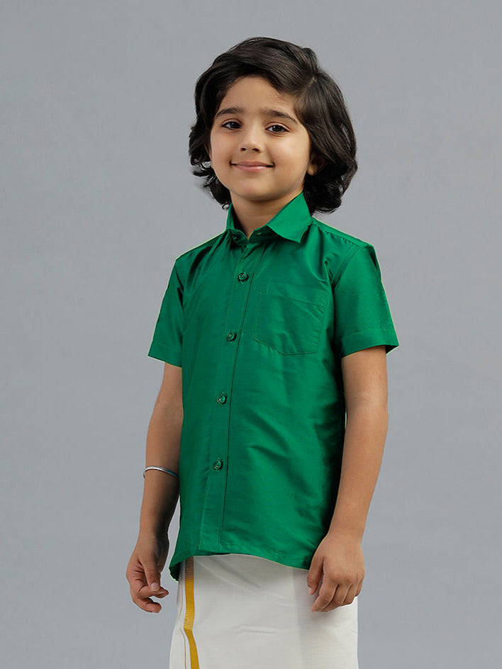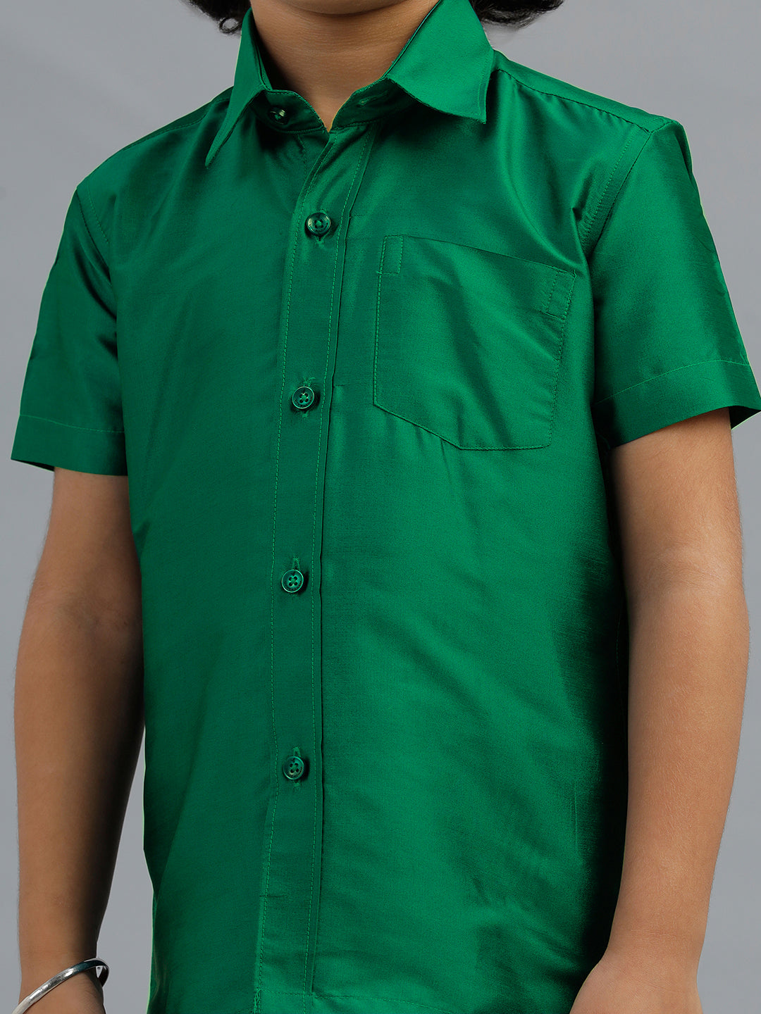 Boys Silk Cotton Green Half Sleeves Shirt K9