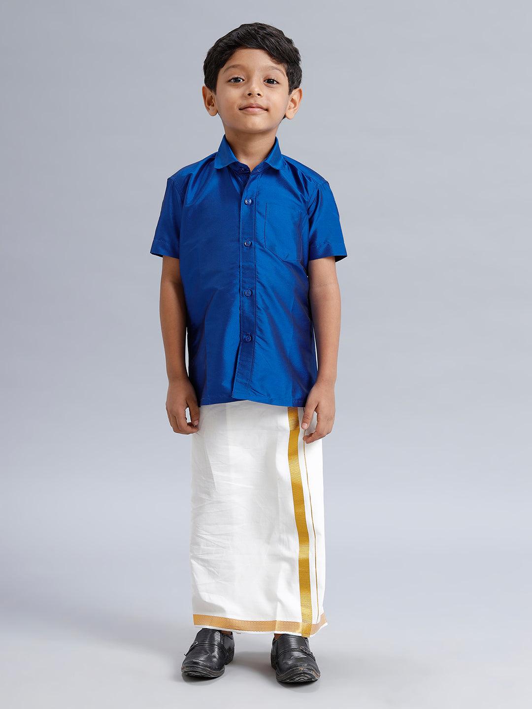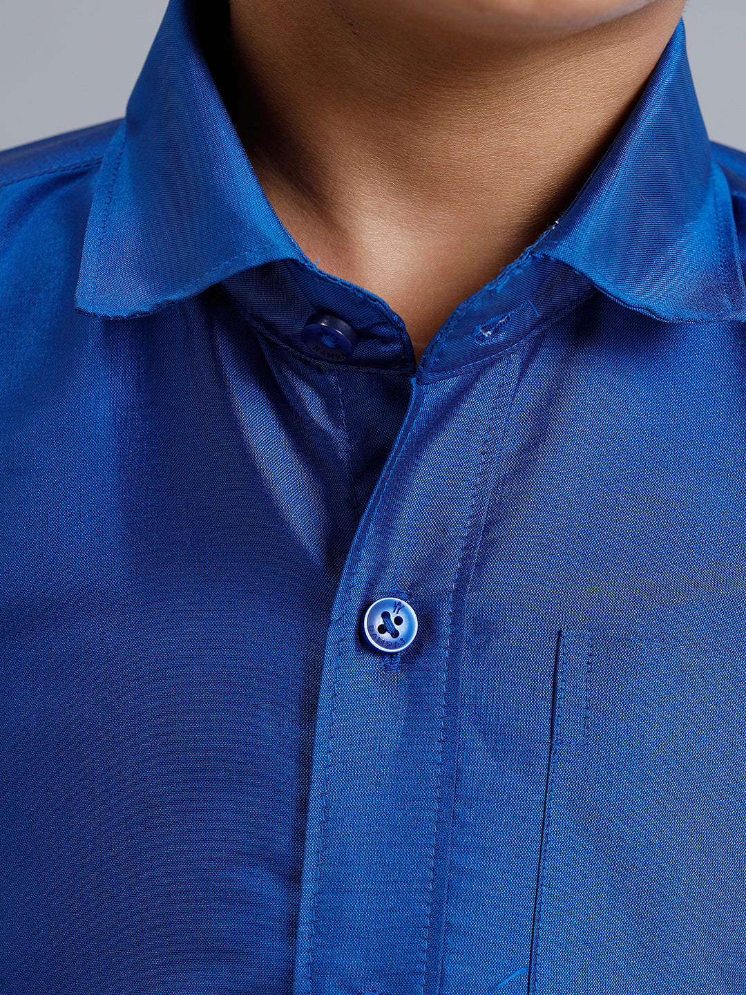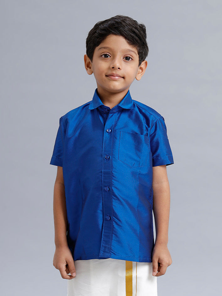 Boys Silk Cotton Royal Blue Half Sleeves Shirt K10