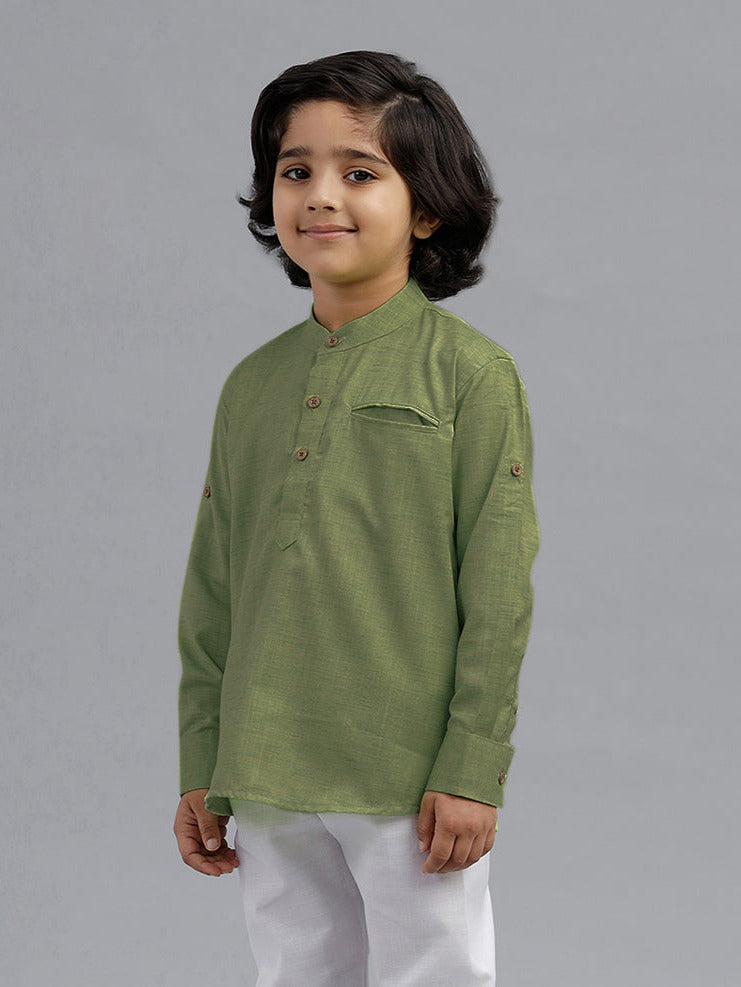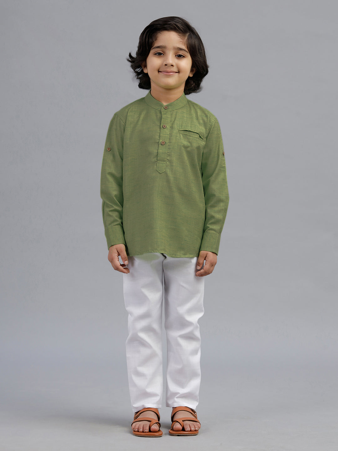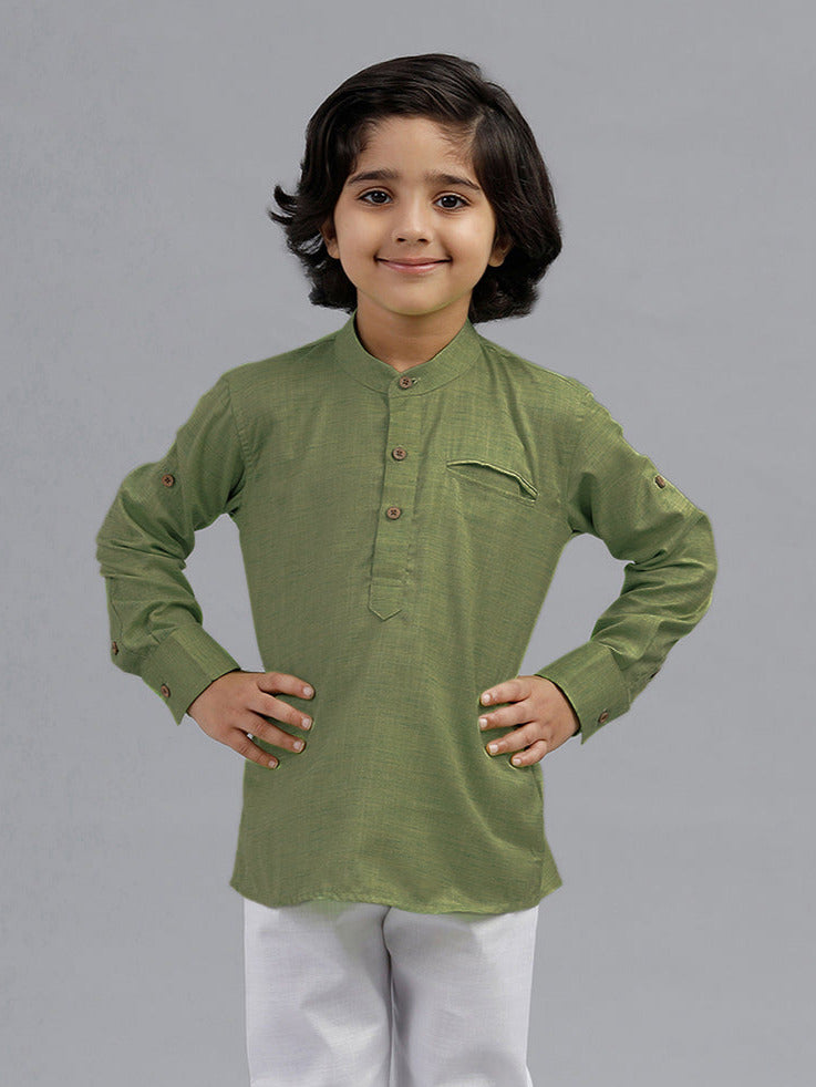 Boys Cotton Full Sleeves Green Kurta HSB5