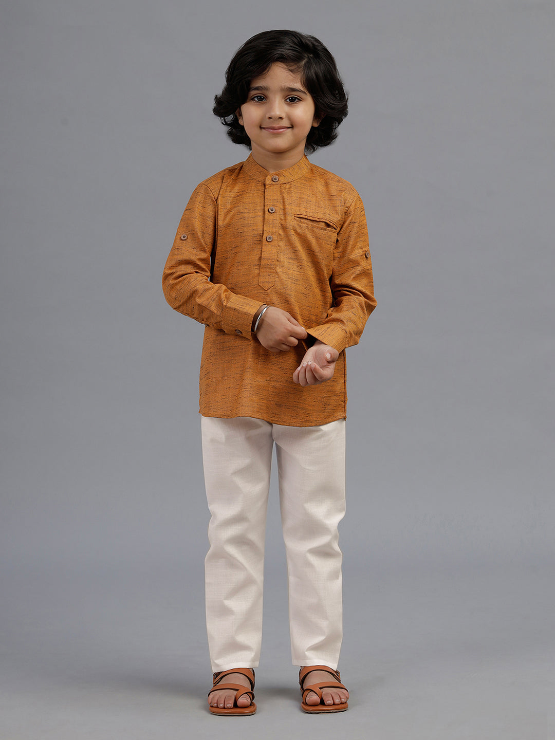 Boys Cotton Full Sleeves Orange Kurta HSB9