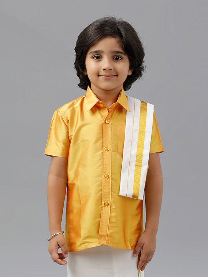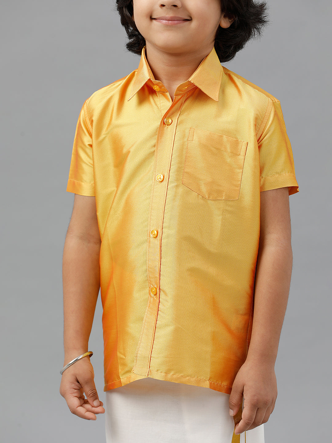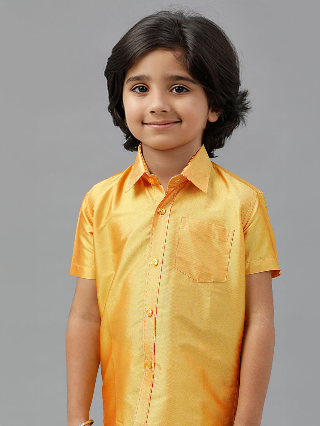 Boys Silk Cotton Orange Half Sleeves Shirt K6