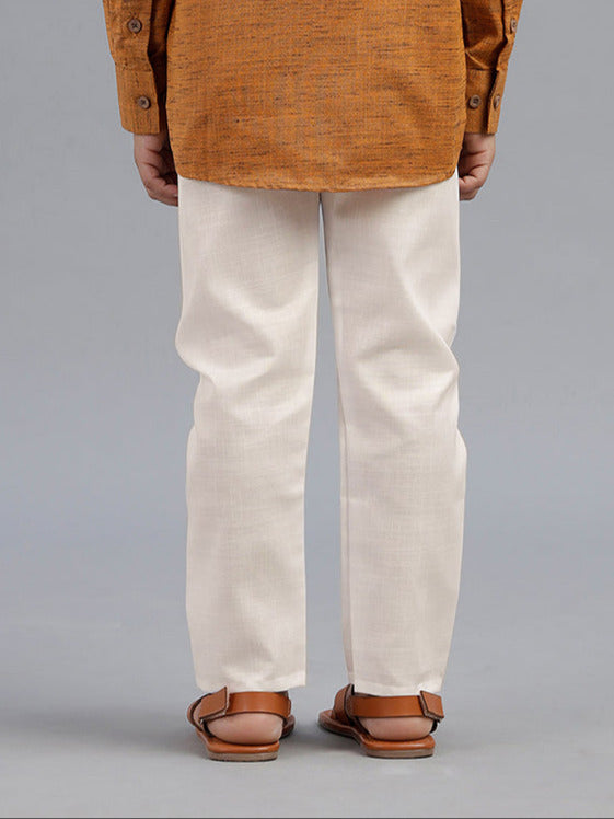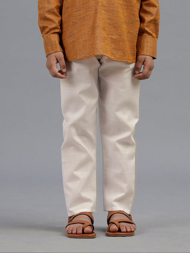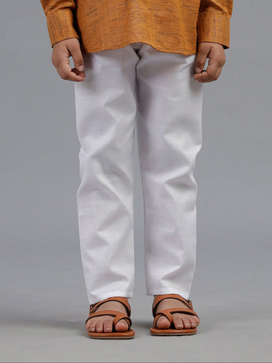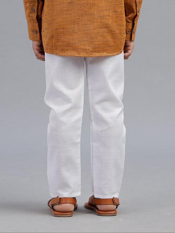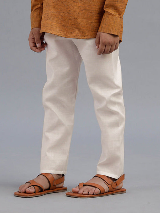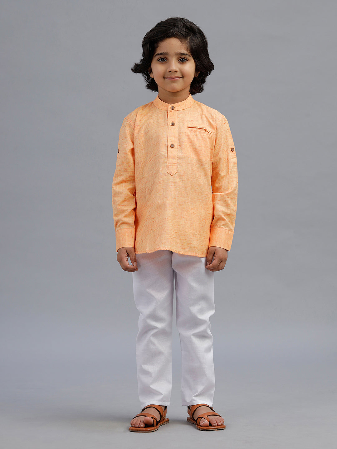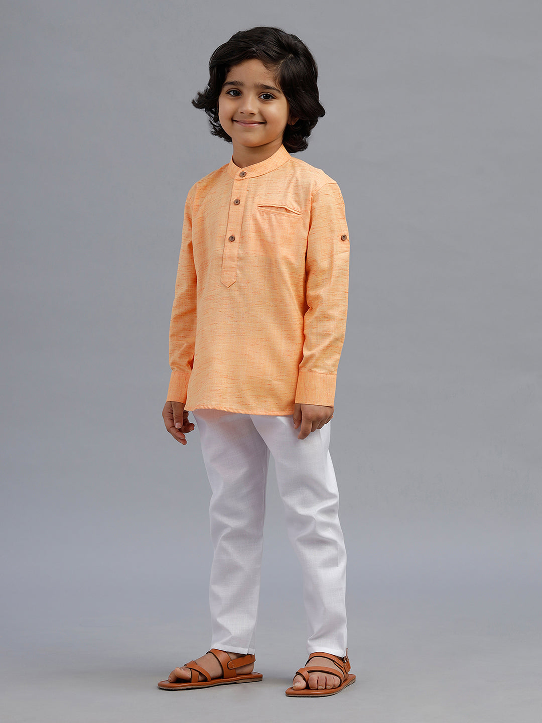 Boys Full Sleeves Orange Kurta with White Pyjama Pant Combo HSB9