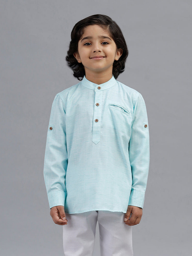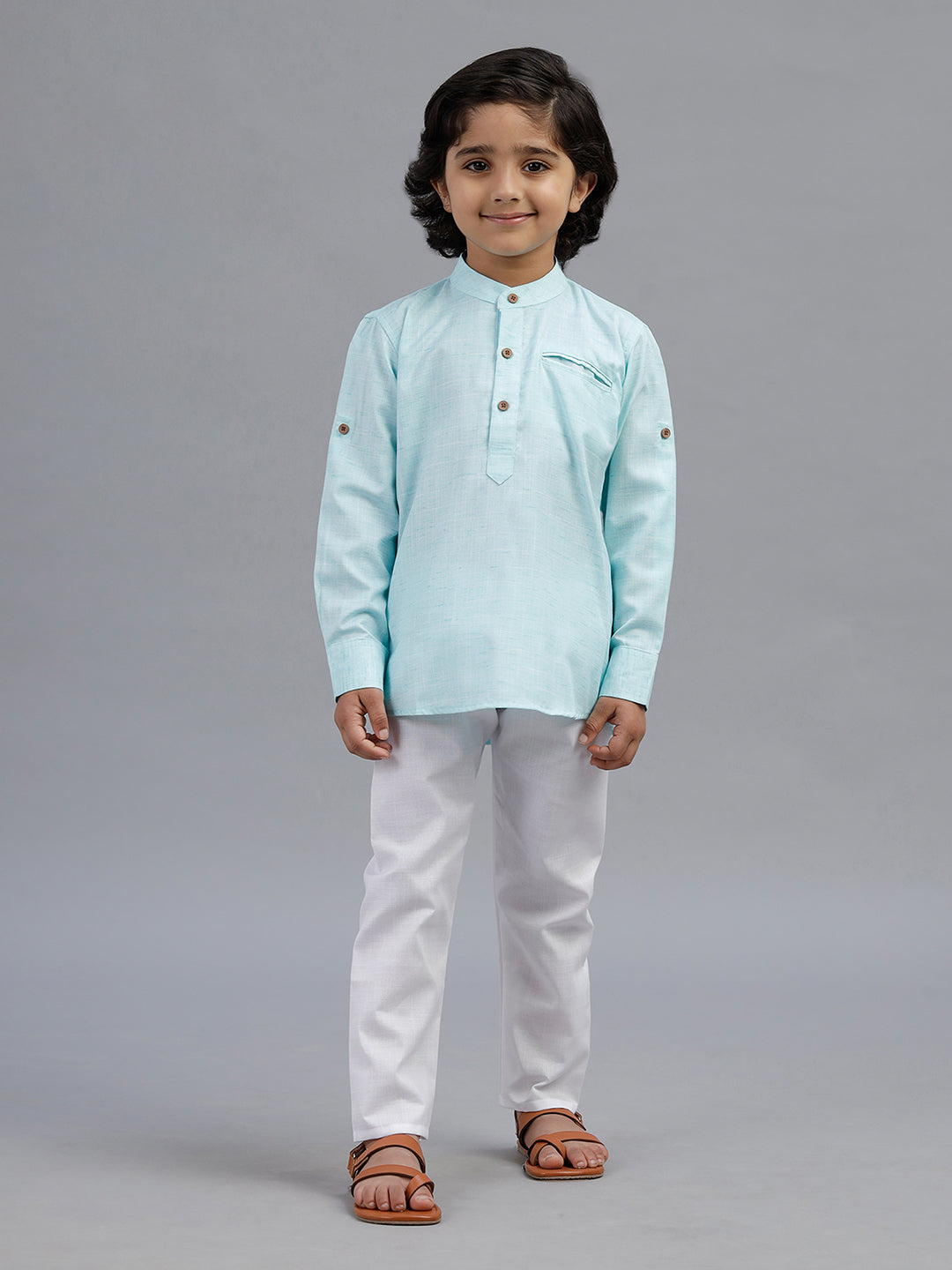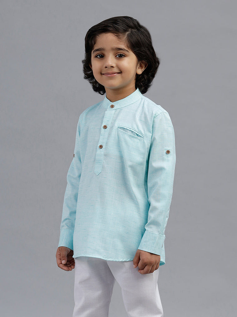 Boys Cotton Full Sleeves Sky Blue Kurta HSB1