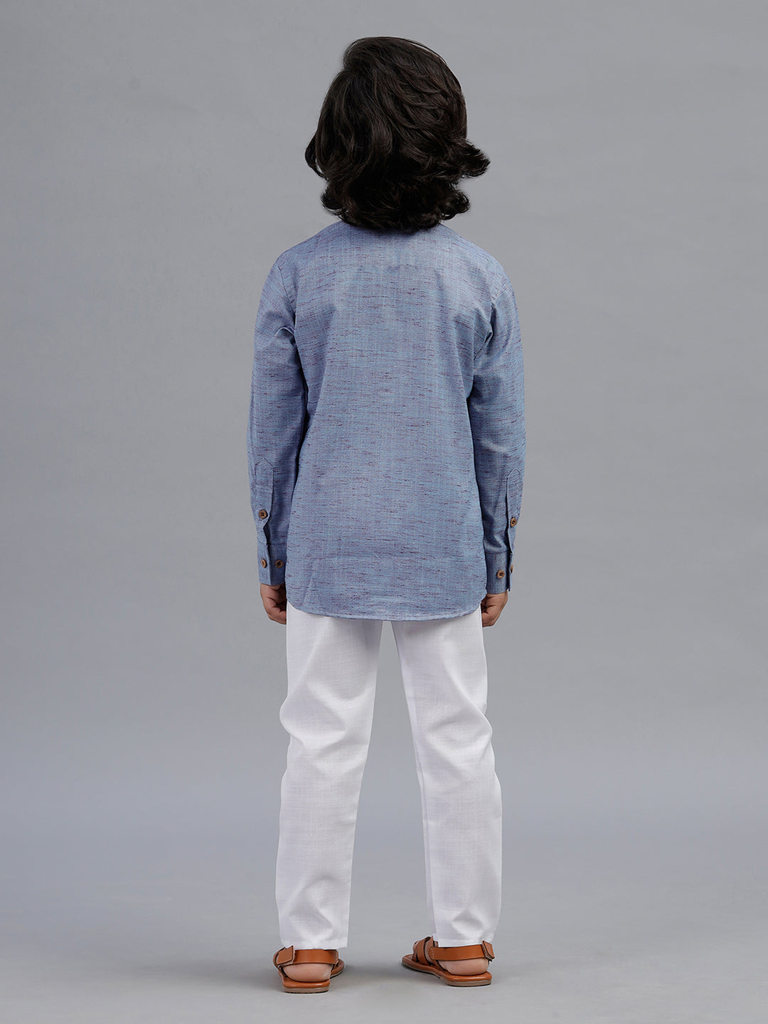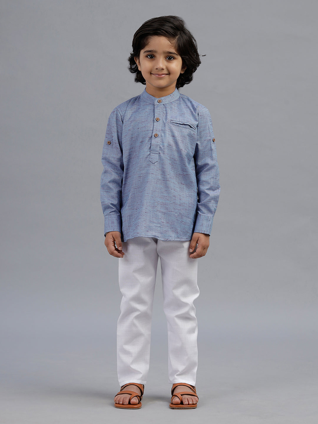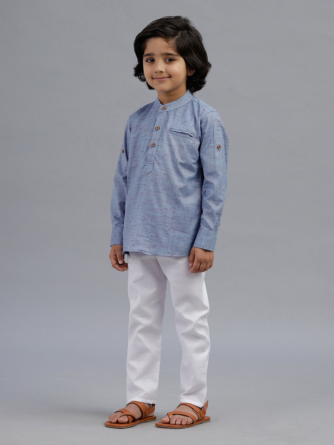 Boys Full Sleeves Blue Kurta with White Pyjama Pant Combo HSB2