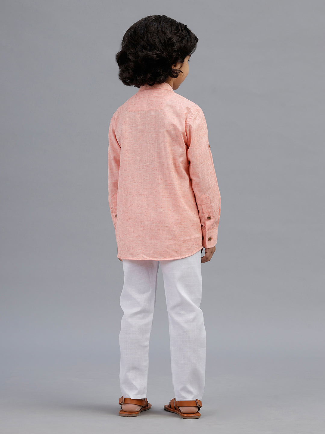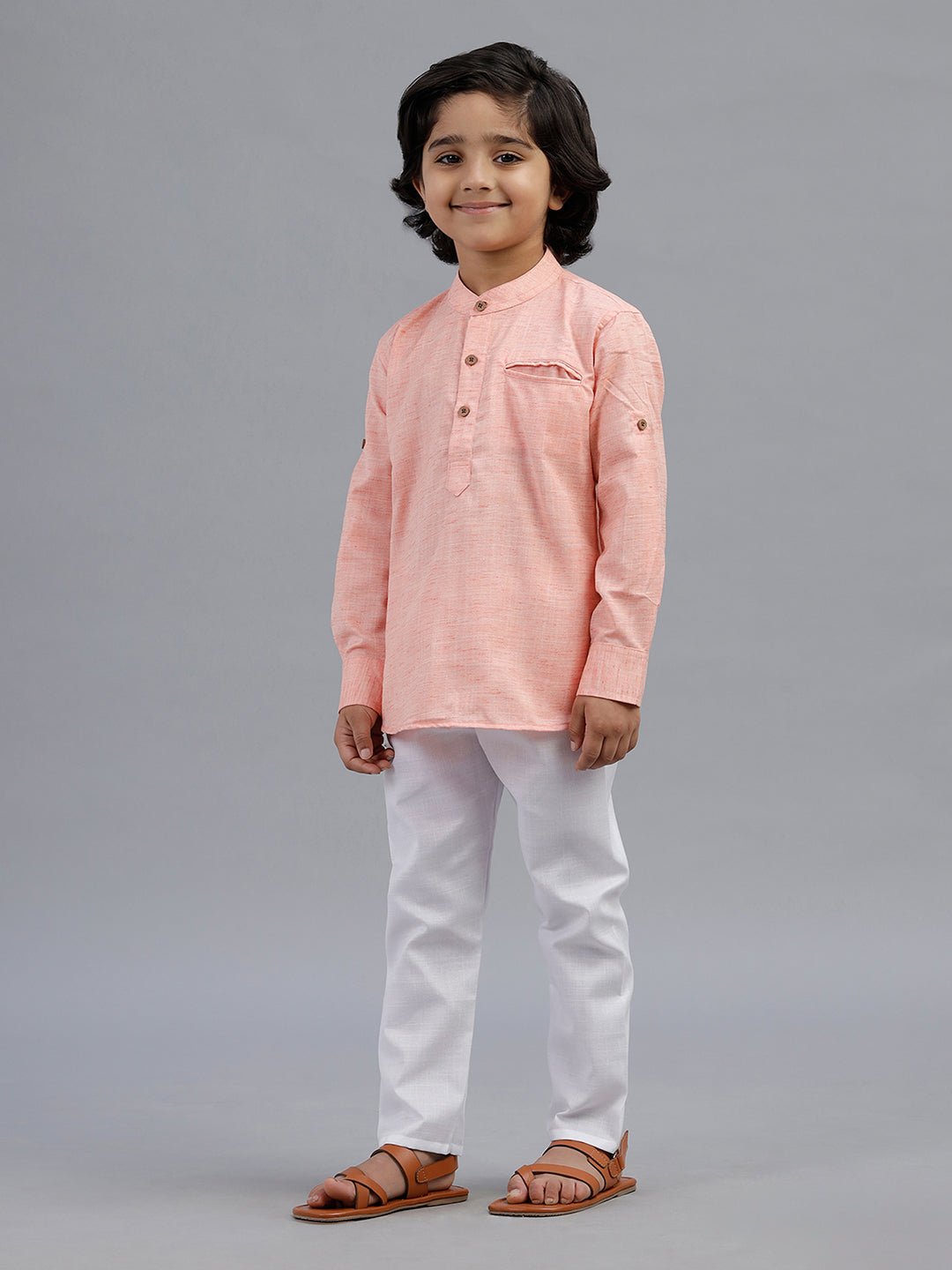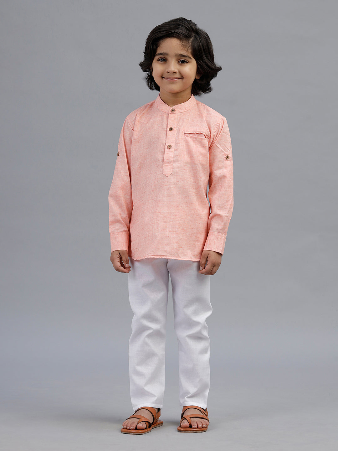 Boys Full Sleeves Pink Kurta with White Pyjama Pant Combo HSB7