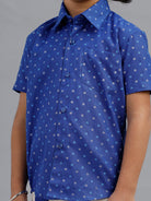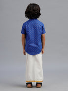 Boys Cotton Printed Shirt and Matching Dhoti Set Blue PR4