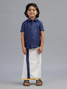 Boys Cotton Printed Shirt and Matching Dhoti Set Dark Blue PR6