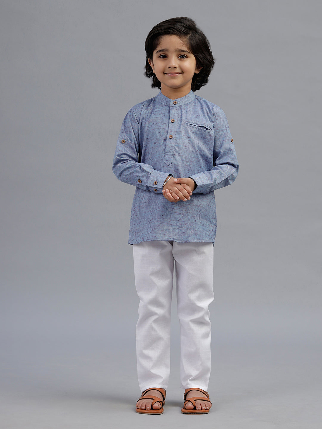 Boys Full Sleeves Blue Kurta with White Pyjama Pant Combo HSB2