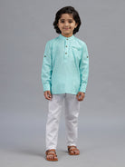 Boys Full Sleeves Mint Blue Kurta with White Pyjama Pant Combo HSB6