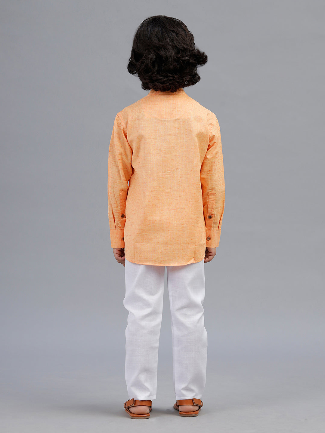 Boys Full Sleeves Orange Kurta with White Pyjama Pant Combo HSB9