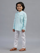 Boys Full Sleeves Sky Blue Kurta with White Pyjama Pant Combo HSB1