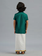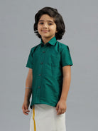 Boys Silk Cotton Ramar Green Half Sleeves Shirt K3