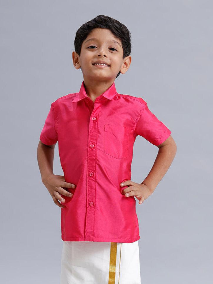 Boys Silk Cotton Dark Pink Half Sleeves Shirt K13