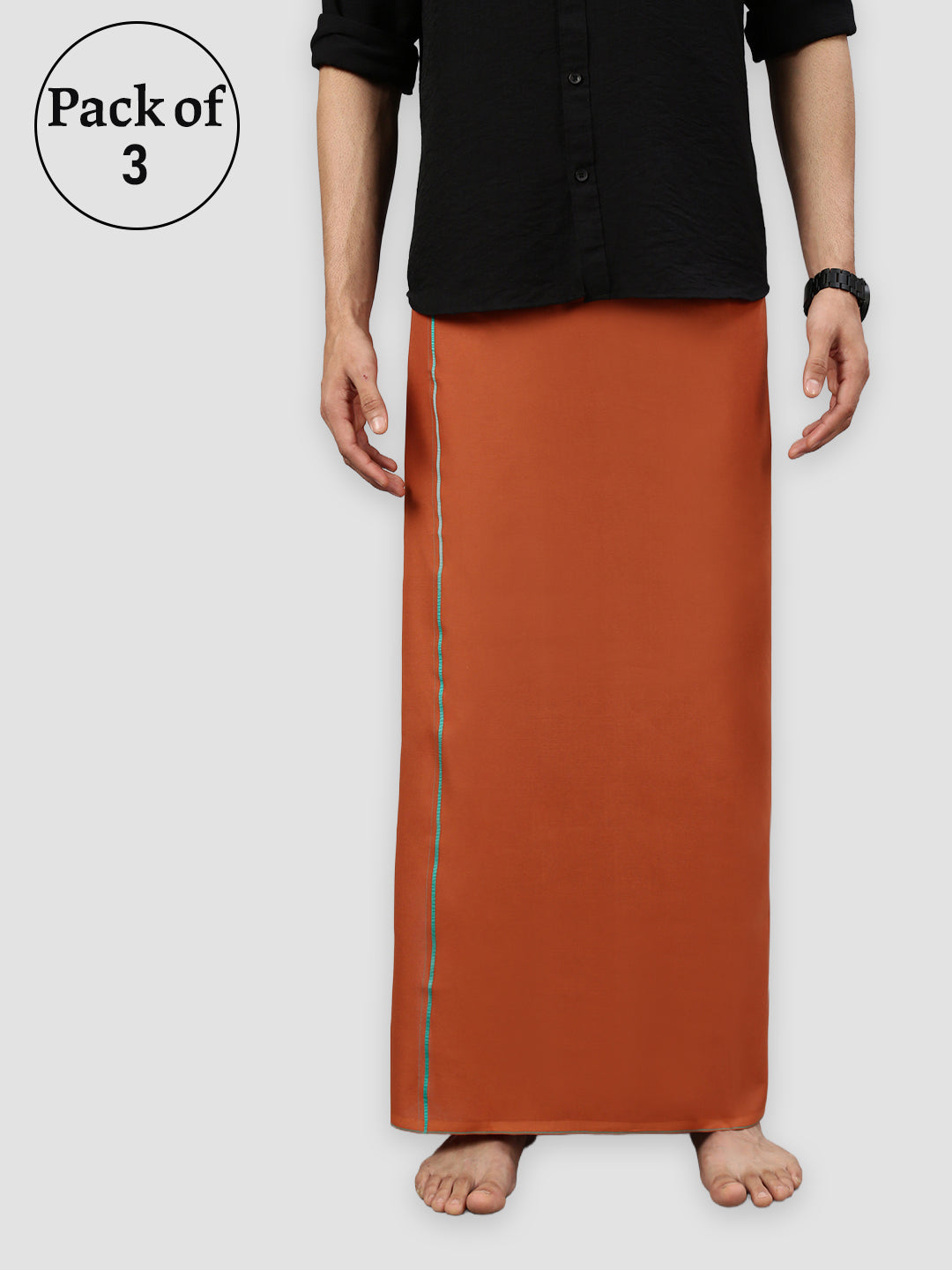 Men 100% Cotton Single Layer Dark Kaavi Dhoti with Assorted Border Maham SB Pack of 3