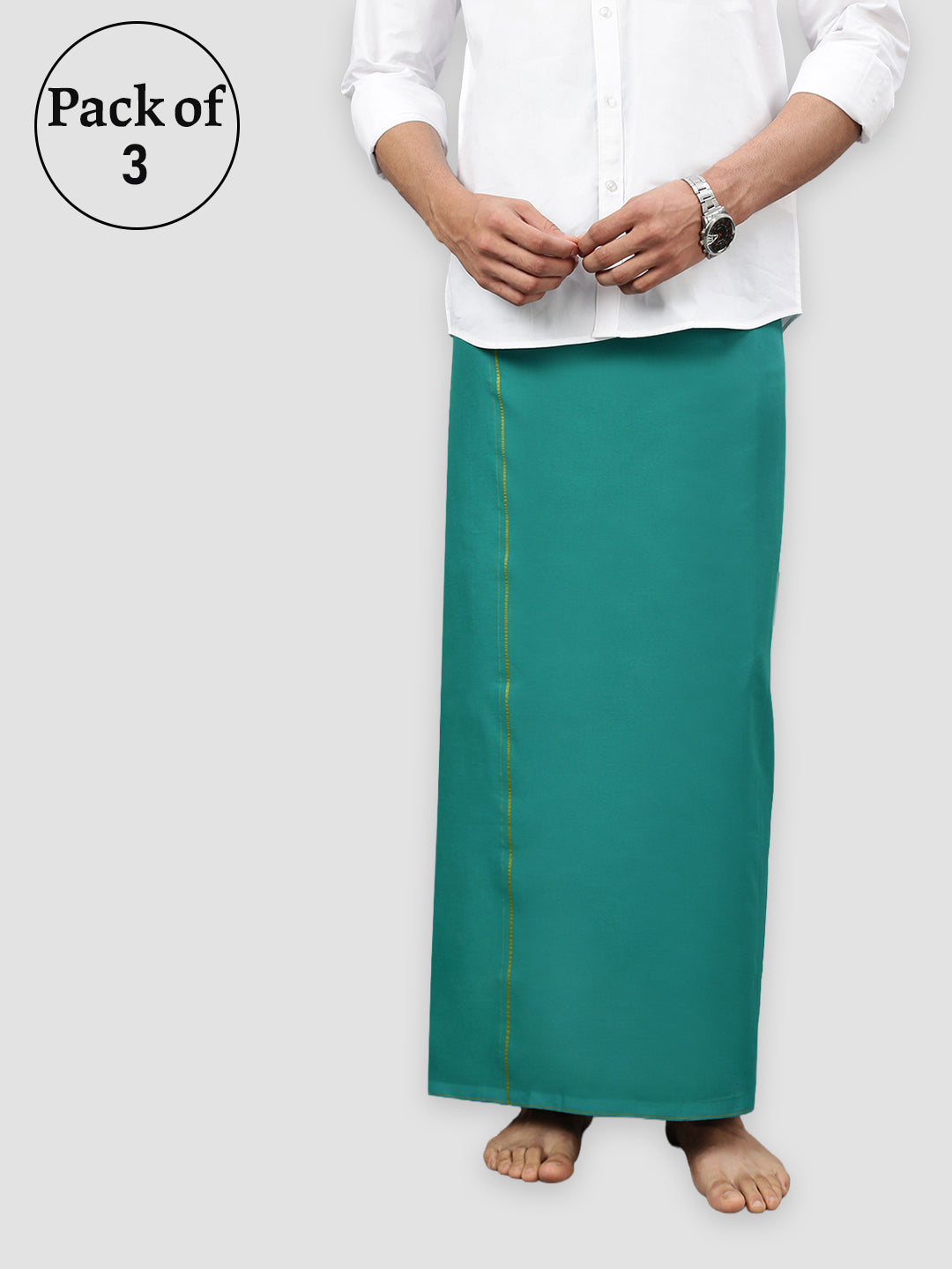 Men 100% Cotton Single Layer Green Dhoti with Assorted Border Amarnath SB Pack of 3