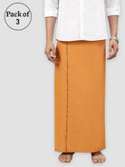 Men 100% Cotton Single Layer Kaavi Dhoti with Assorted Border Amarnath SB Pack of 3