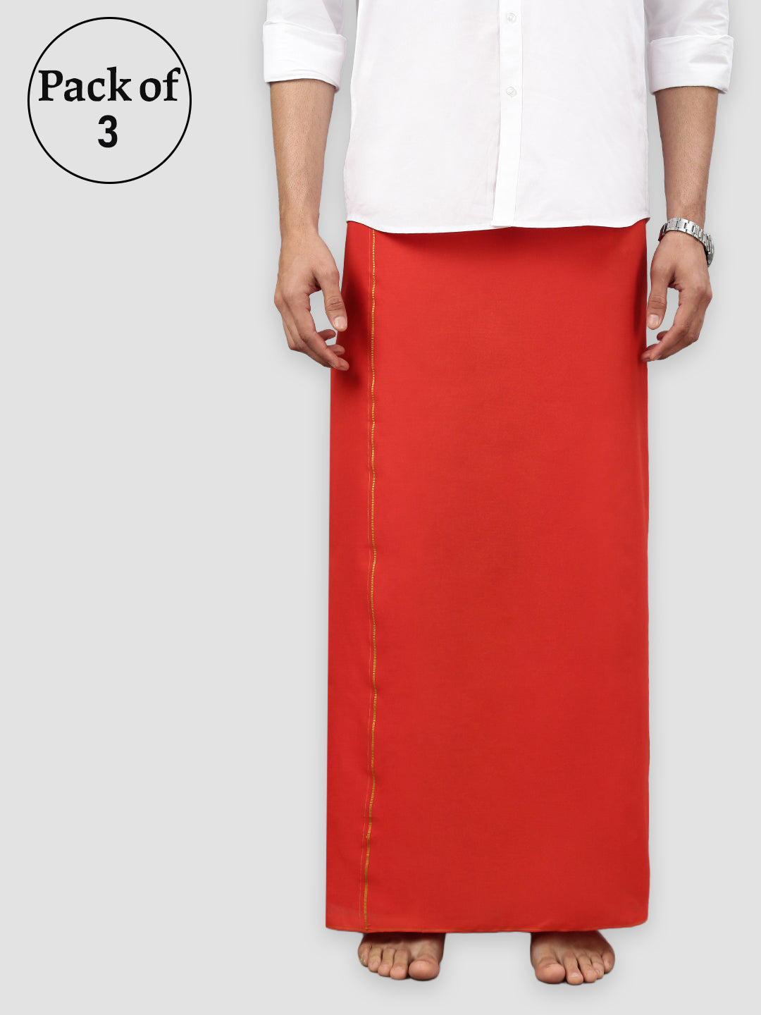 Men 100% Cotton Single Layer Red Dhoti with Assorted Border Amarnath SB Pack of 3