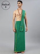 Men Cotton Blend Single Layer Green Dhoti & Towel Set Manikanda Pack of 3