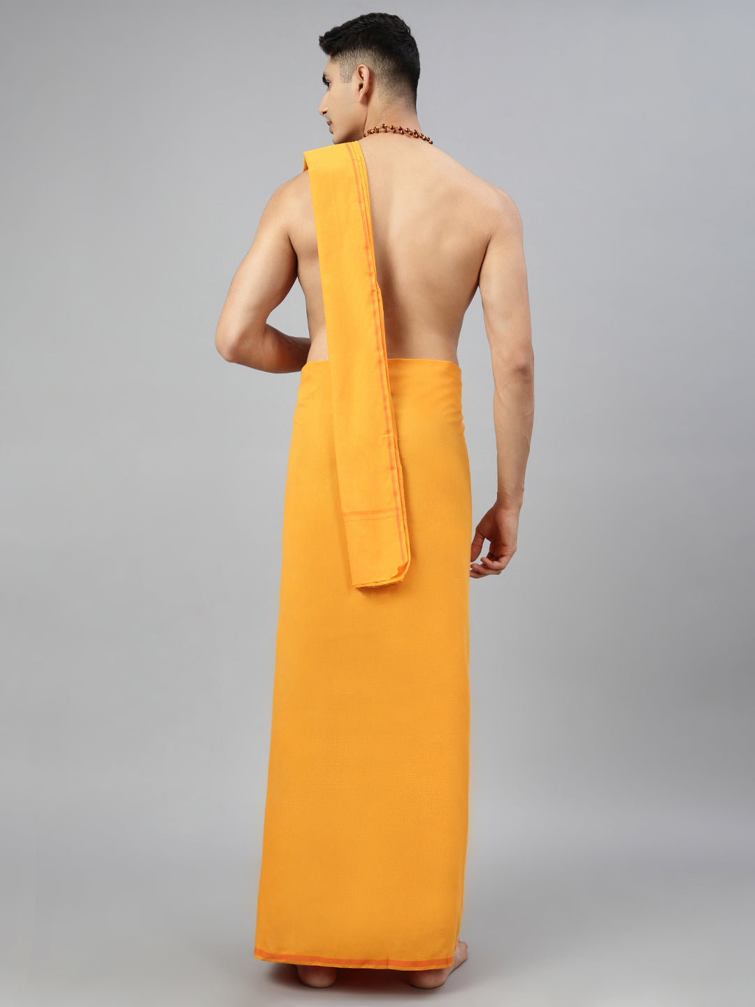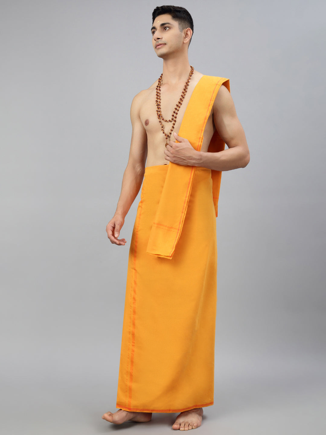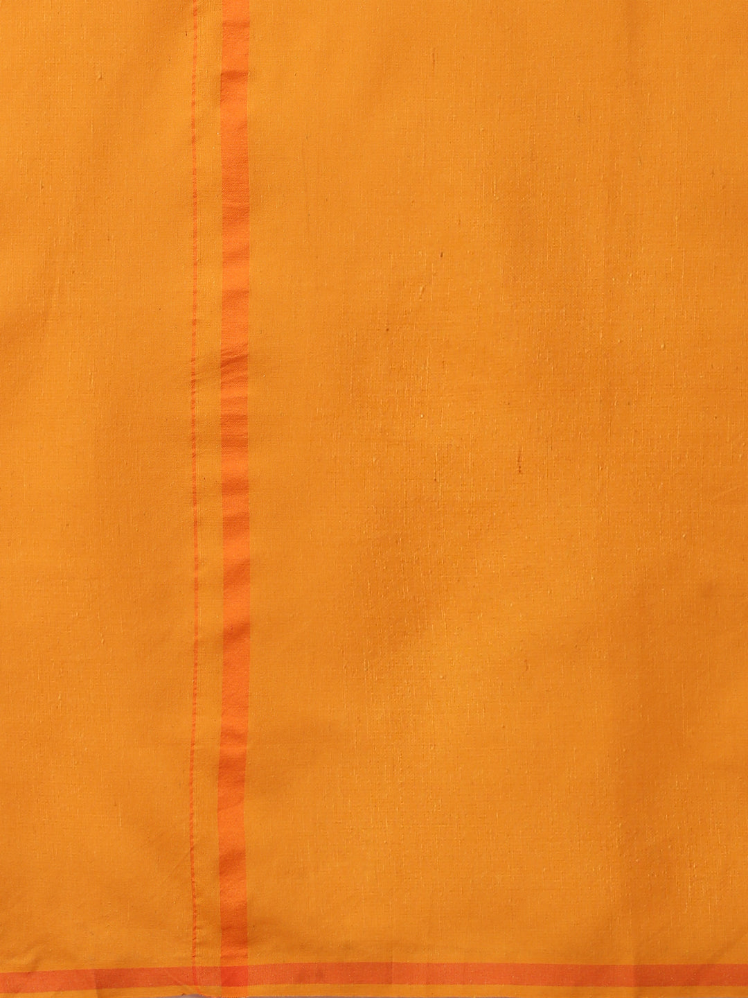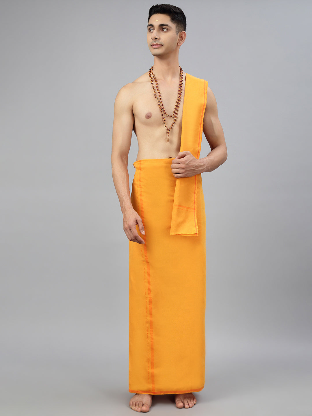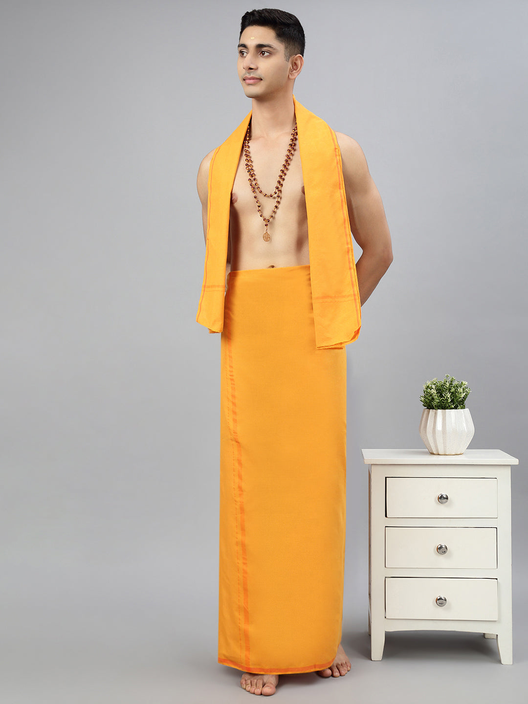 Men Cotton Blend Single Layer Mango Dhoti & Towel Set Manikanda