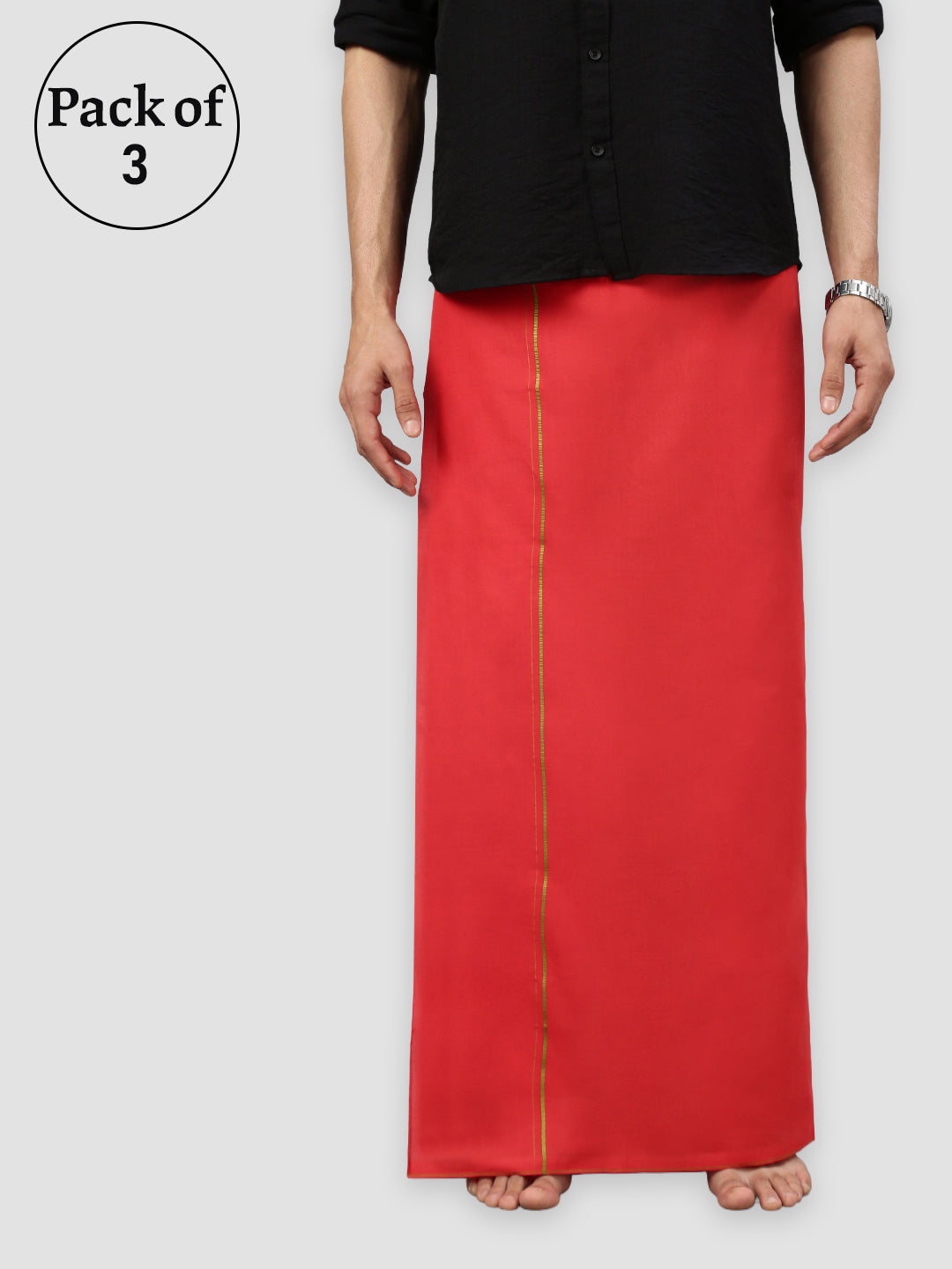 Men 100% Cotton Single Layer Red Dhoti with Assorted Border Amarnath SB Pack of 3