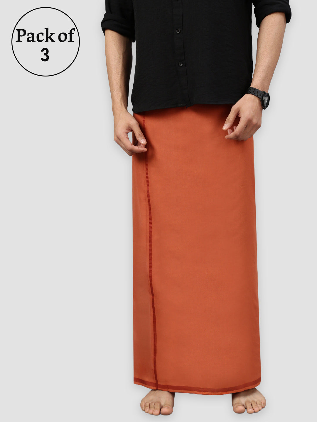 Men 100% Cotton Single Layer Dark Kaavi Dhoti with Assorted Border Amarnath BB Pack of 3