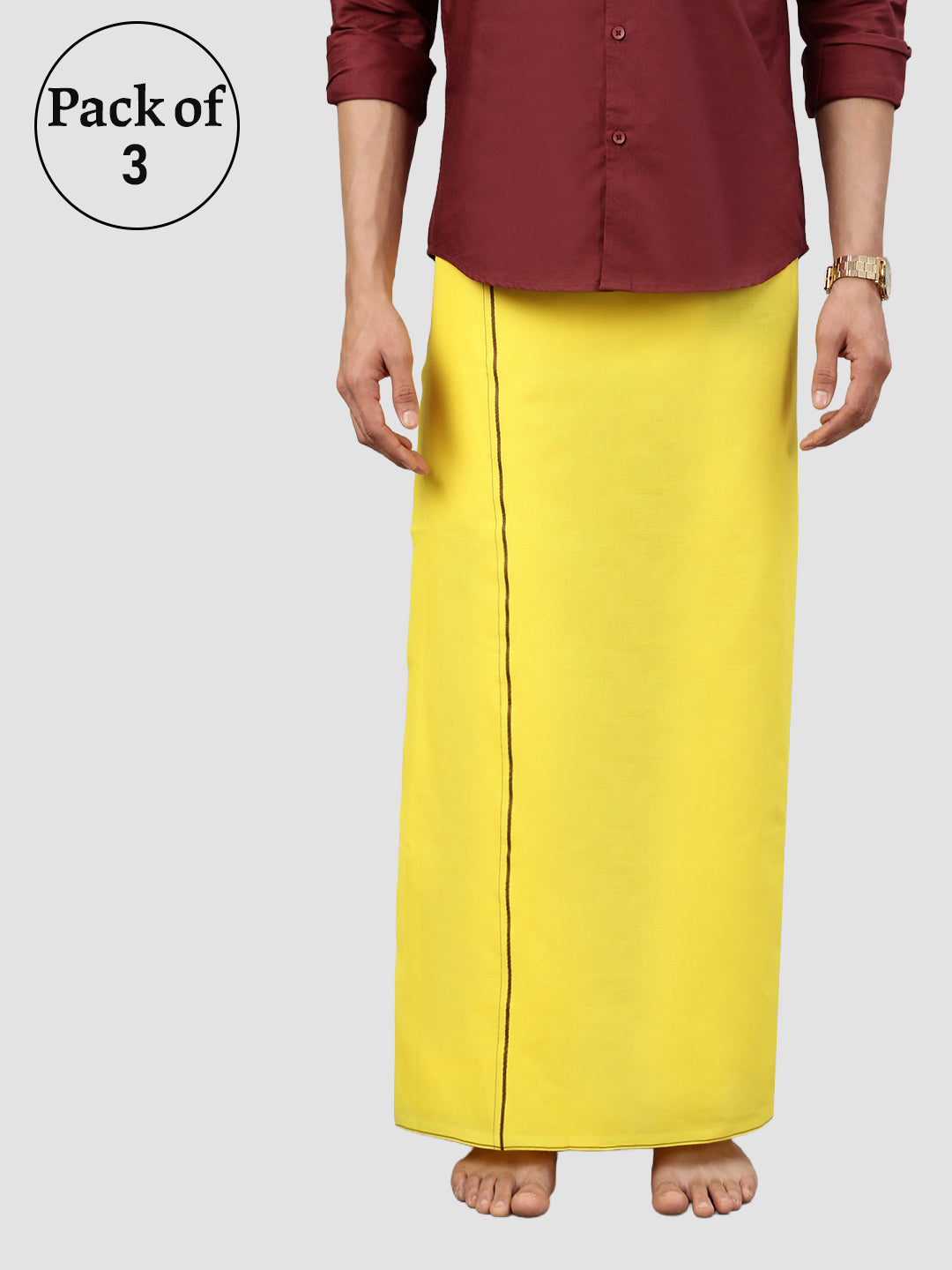Men 100% Cotton Single Layer Yellow Dhoti with Assorted Border Maham SB Pack of 3