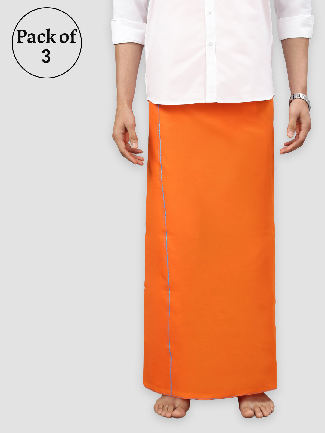 Men 100% Cotton Single Layer Orange Dhoti with Assorted Border Amarnath SB Pack of 3