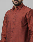 Men Cotton Blend Full Sleeves Shirt and Dhoti Set Maroon CL8