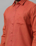 Men Cotton Blend Full Sleeves Shirt and Dhoti Set Orange HC1
