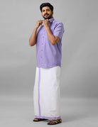 Men Cotton Blend Half Sleeves Shirt and Dhoti Set Lavender R9