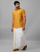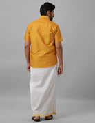 Men Cotton Blend Half Sleeves Shirt and Dhoti Set Mustard CL6