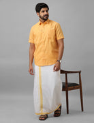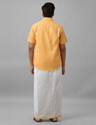 Men Cotton Blend Half Sleeves Shirt and Dhoti Set Yellow R7