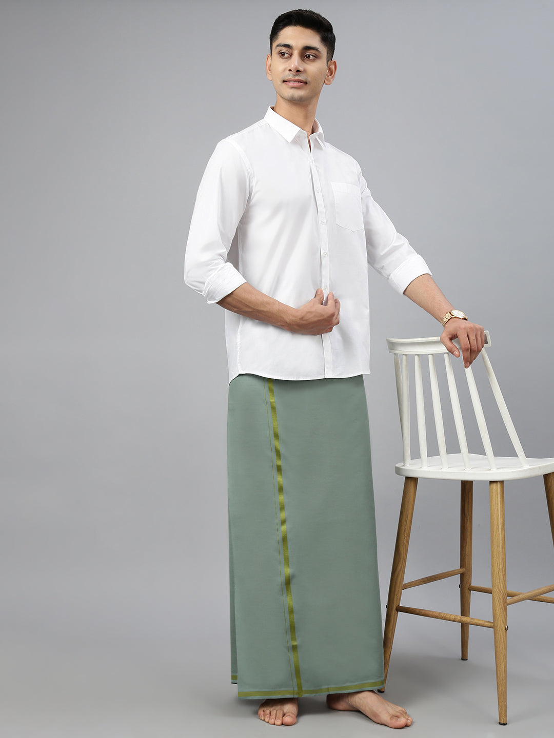 Crafted from 100% cotton, this single-layer dhoti offers a perfect blend of comfort and tradition. Its breathable and lightweight fabric ensures ease of movement, making it ideal for extended wear during festive or ceremonial occasions. The subtle Big border adds a refined touch, enhancing its classic and elegant appeal. Whether paired with a kurta or traditional shirt, this dhoti is a timeless choice for poojas, weddings, and cultural celebrations.