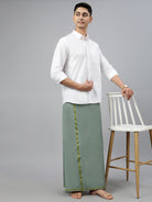 Men 100% Cotton Single Layer Cement Dhoti with Assorted Big Border Amarnath BB