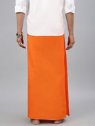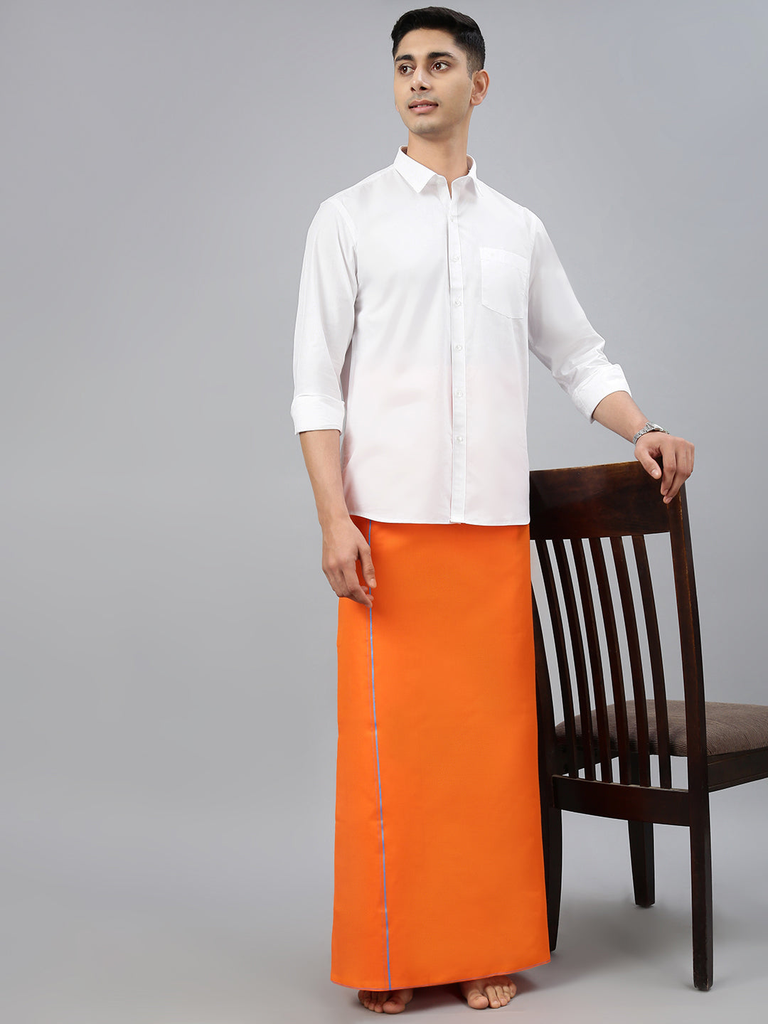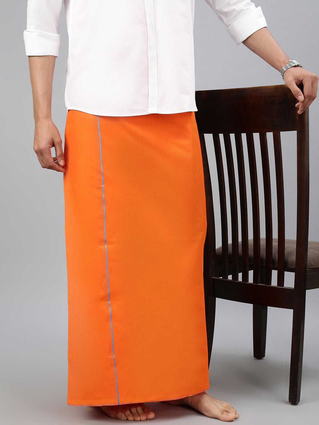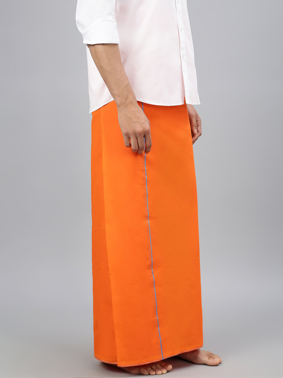 Men 100% Cotton Single Layer Orange Dhoti with Assorted Small Border Amarnath SB