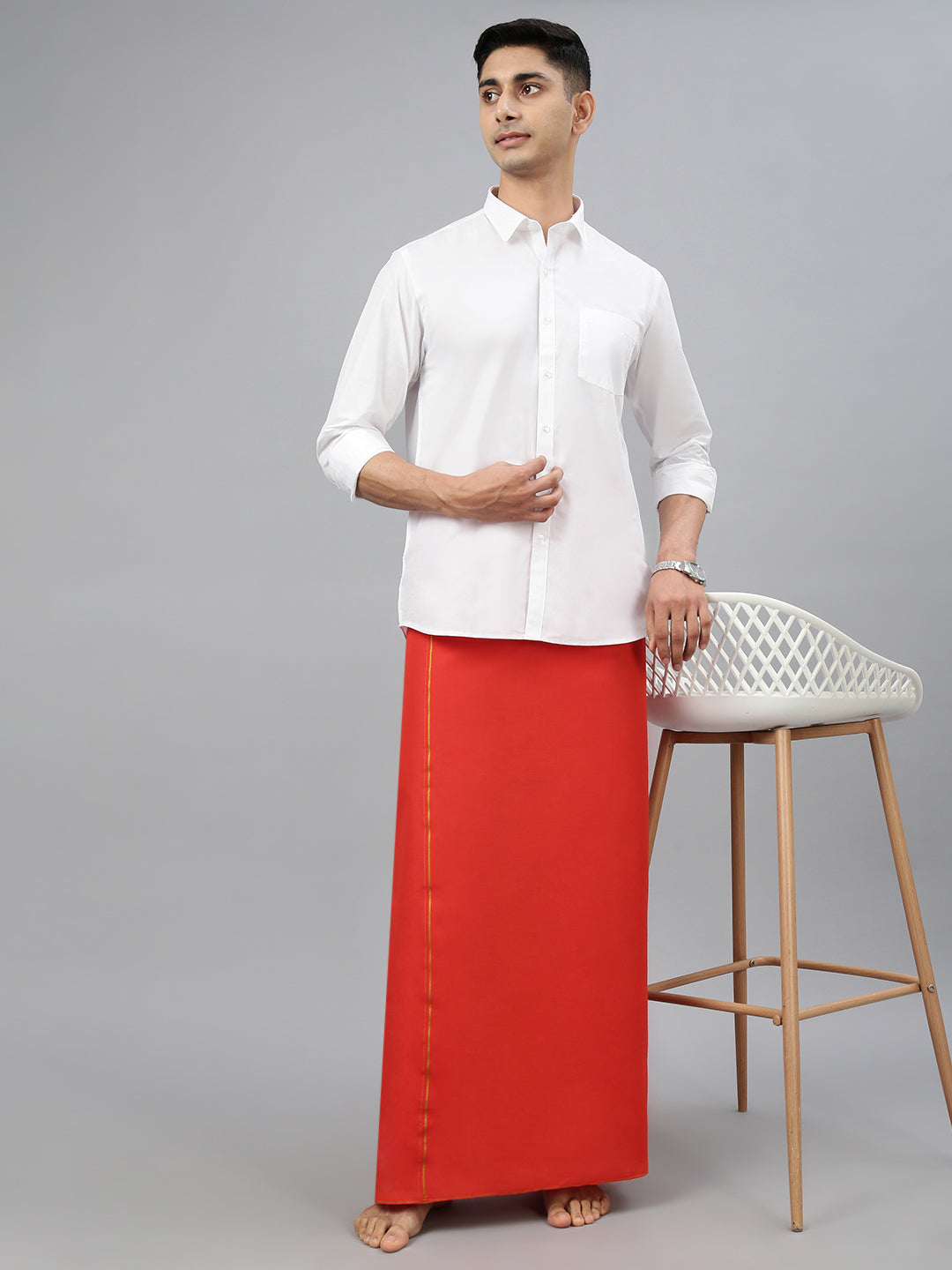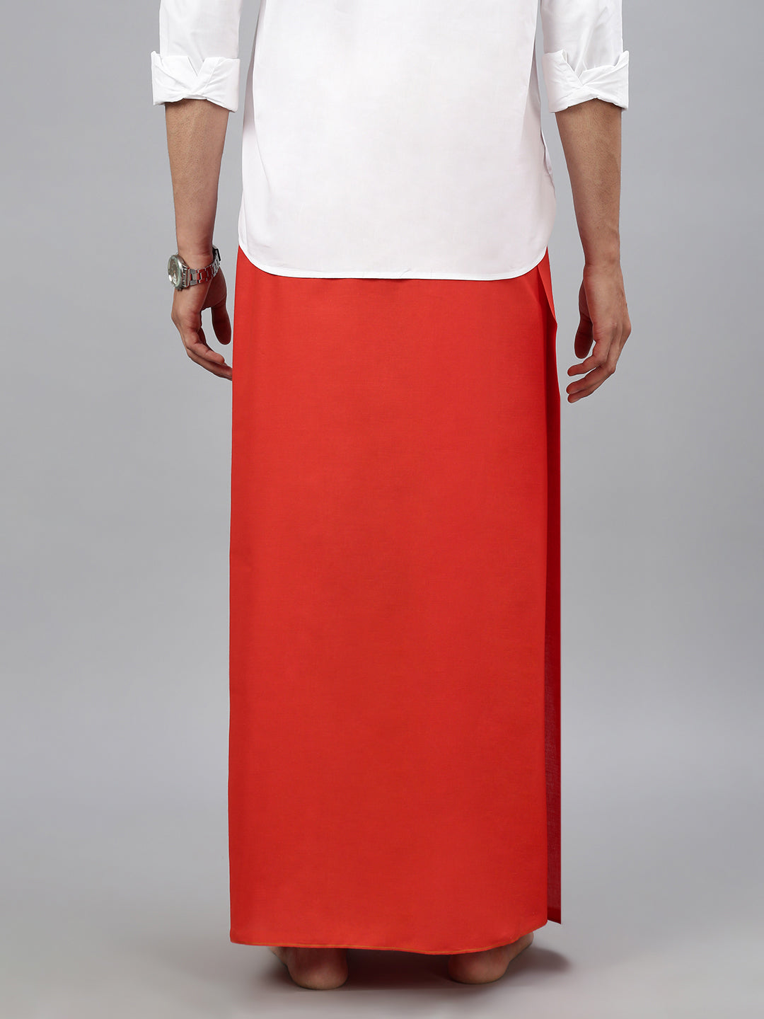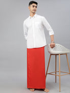 Men 100% Cotton Single Layer Red Dhoti with Assorted Small Border Amarnath SB