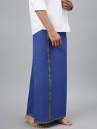 Men 100% Cotton Single Layer Royal Blue Dhoti with Assorted Big Border Amarnath BB