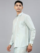 Men Sean Blue Tissue Full Sleeves Shirt Sangeet