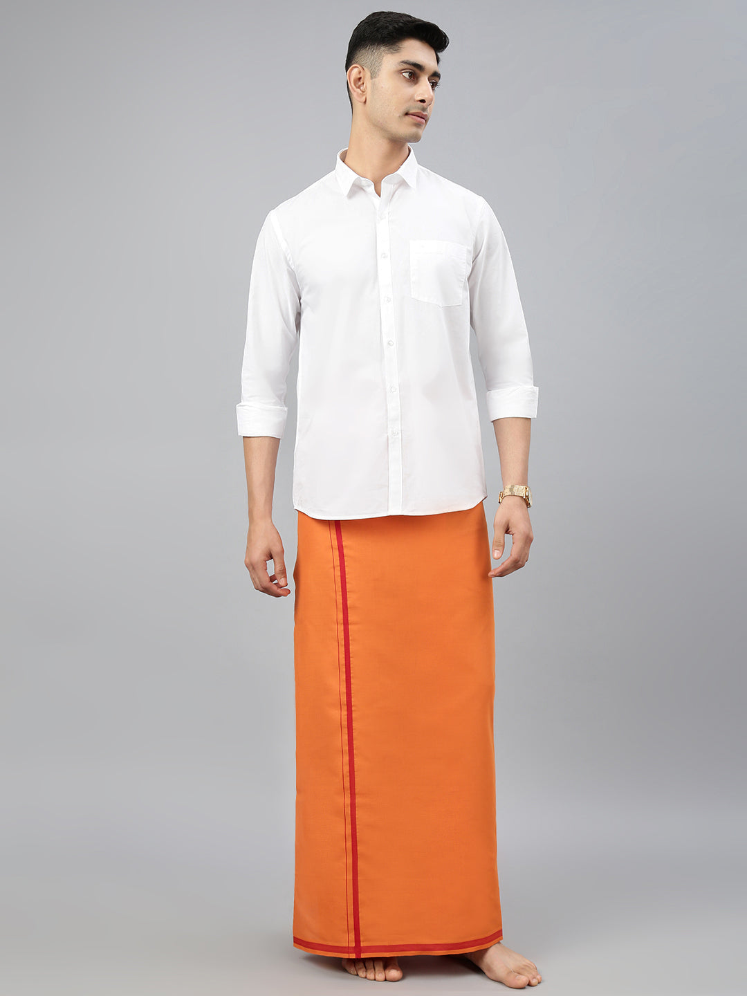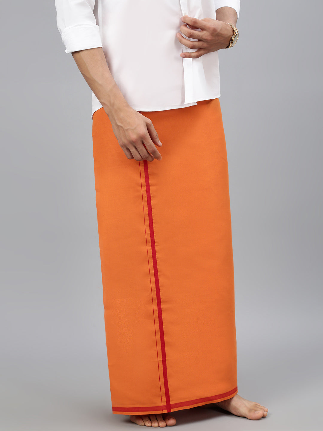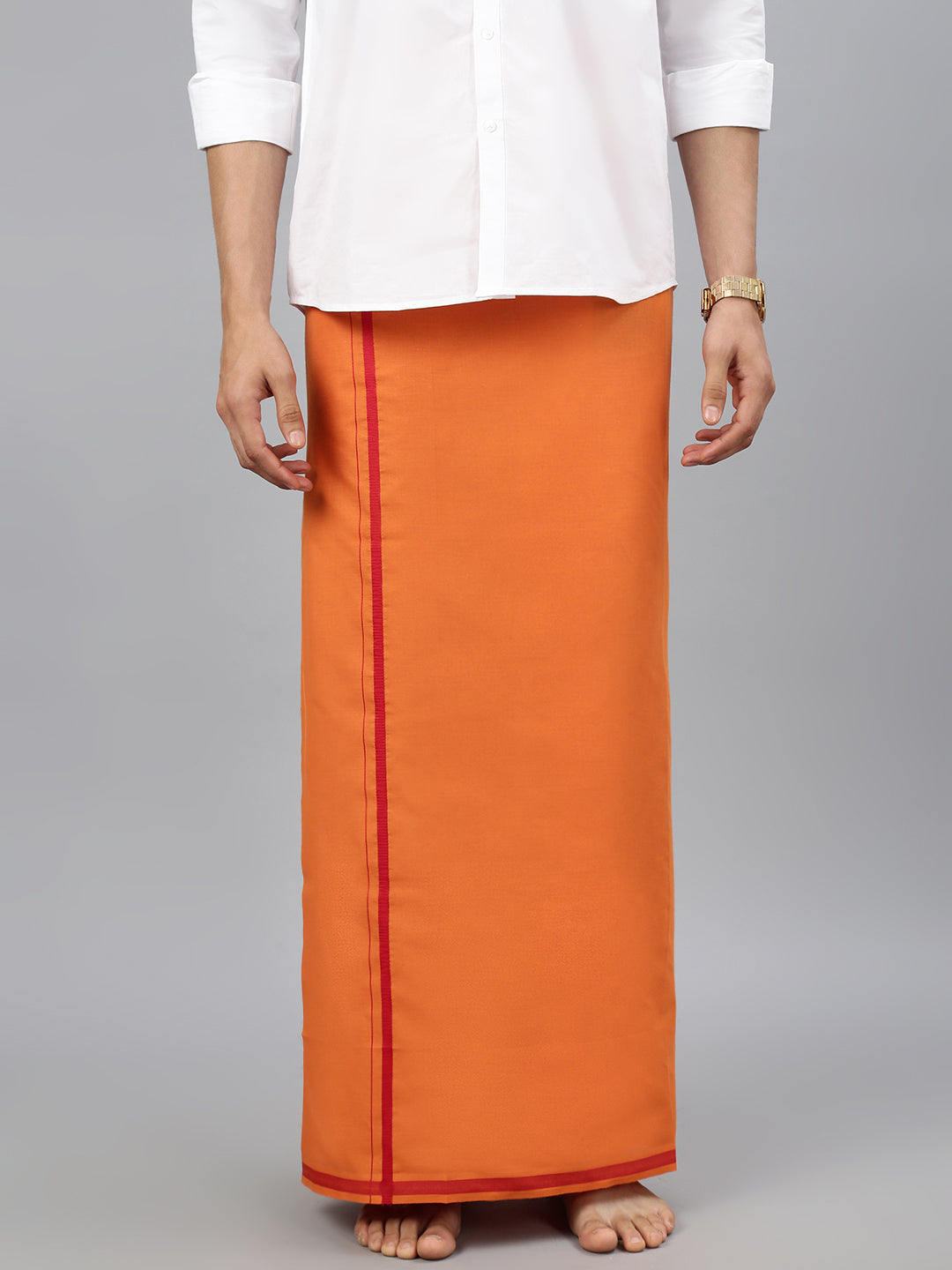 Crafted from 100% cotton, this single-layer dhoti offers a perfect blend of comfort and tradition. Its breathable and lightweight fabric ensures ease of movement, making it ideal for extended wear during festive or ceremonial occasions. The subtle Big border adds a refined touch, enhancing its classic and elegant appeal. Whether paired with a kurta or traditional shirt, this dhoti is a timeless choice for poojas, weddings, and cultural celebrations.