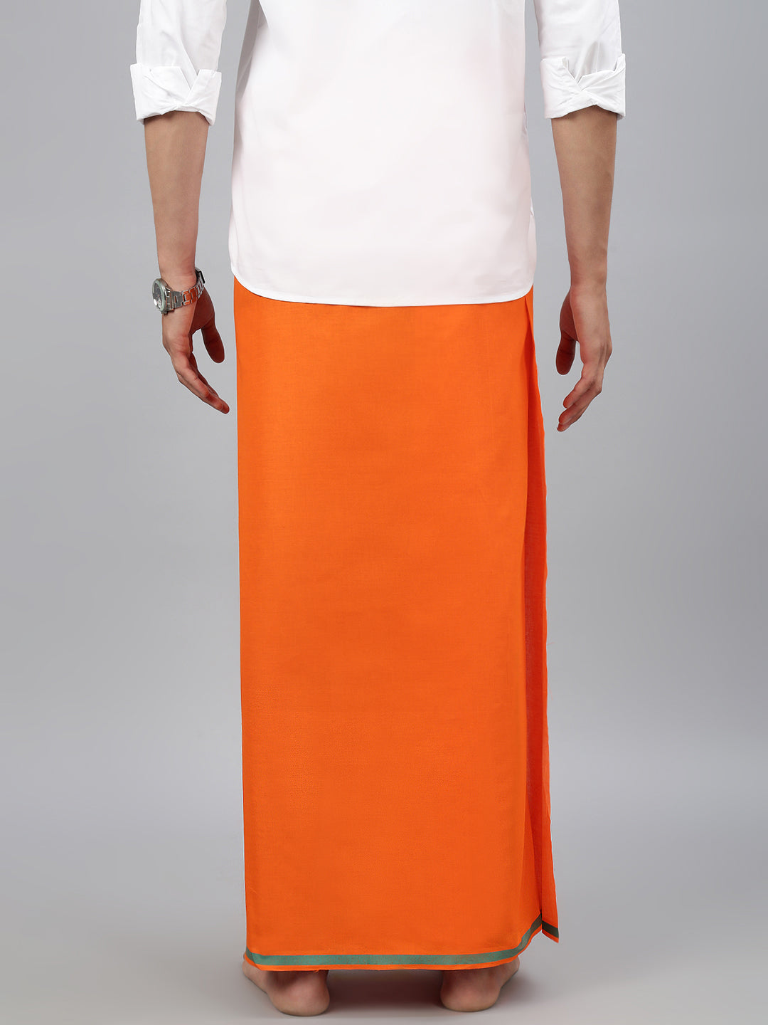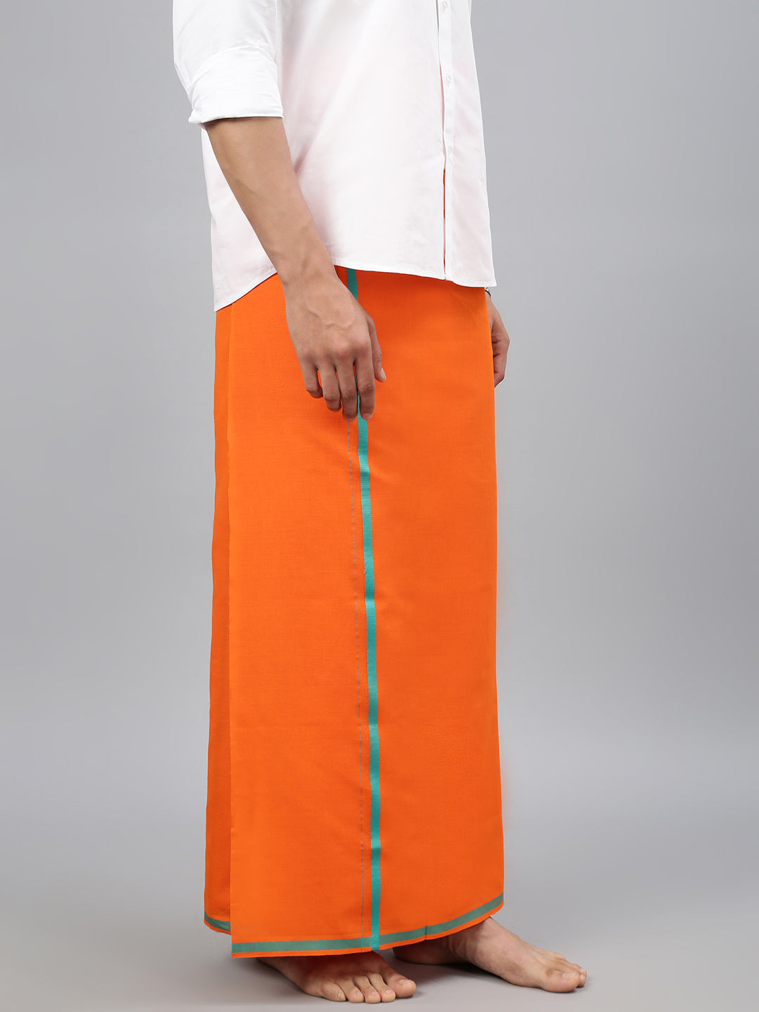 Men 100% Cotton Single Layer Orange Dhoti with Assorted Big Border Maham BB