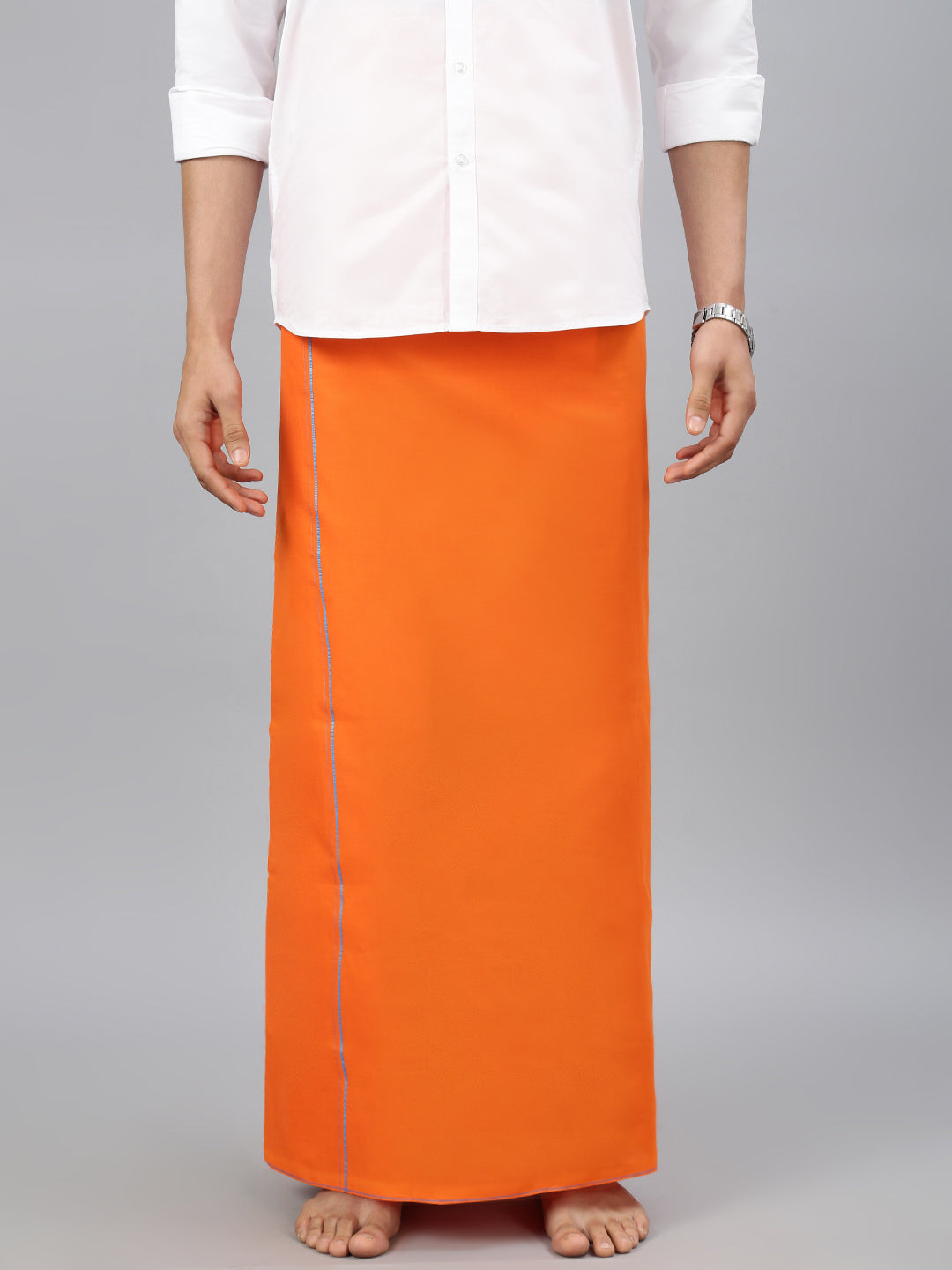 Men 100% Cotton Single Layer Orange Dhoti with Assorted Small Border Amarnath SB