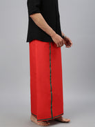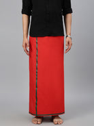 Men 100% Cotton Single Layer Red Dhoti with Assorted Big Border Amarnath BB