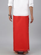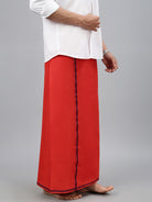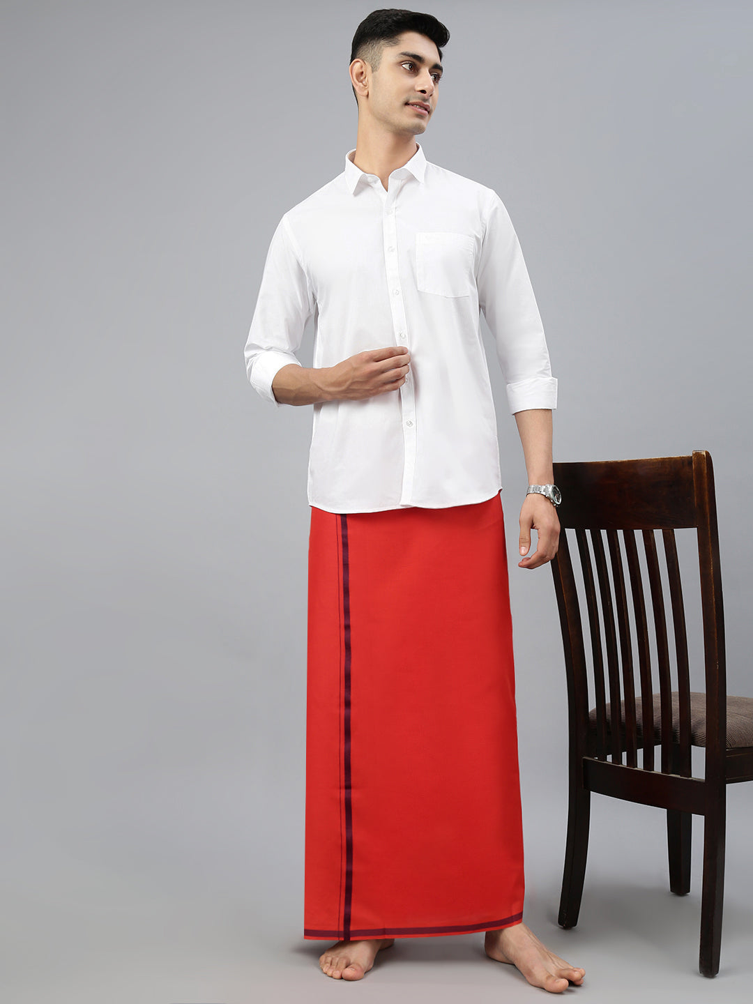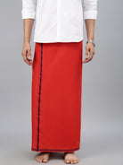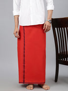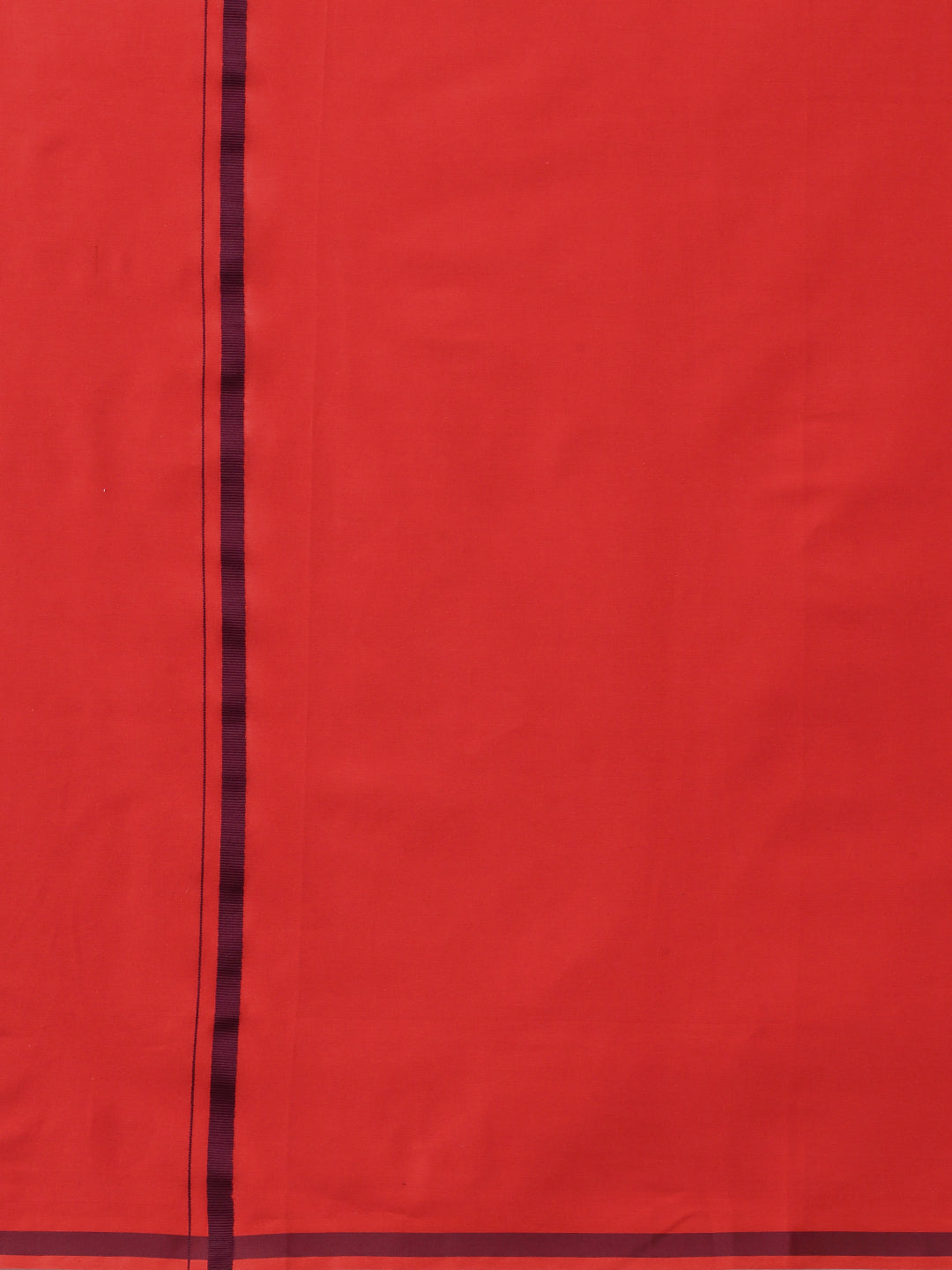 Men 100% Cotton Single Layer Red Dhoti with Assorted Big Border Maham BB